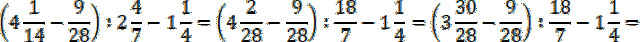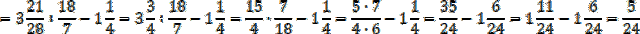 Pamiętaj o kolejności wykonywania działań: najpierw wykonaj działanie w nawiasie, po nim wykonaj dzielenie, a na koniec – odejmowanie. Przed wykonaniem odejmowania sprowadź ułamki do wspólnego mianownika (jeżeli liczba w liczniku odjemnika jest mniejsza od licznika odjemnej, zamień jedną całość odjemnej na ułamek i dodaj ją do licznika). Zapisz liczby mieszane jako ułamki niewłaściwe, a dzielenie zastąp mnożeniem przez odwrotność dzielnika. Na koniec sprowadź liczby do wspólnego mianownika i wykonaj odejmowanie.
