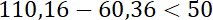 Gdy od 110 odejmiemy 60, to otrzymamy równe 50. Do 50 musimy dodać wynik działania 0,16 - 0,36, który oczywiście jest ujemny, więc nasza liczba ostatecznie będzie mniejsza od 50.