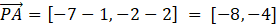 Aby obliczyć współrzędne wektorów, od odpowiednich współrzędnych ich końców odejmij współrzędne początków.