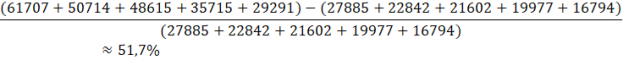 Oblicz, o ile procent mniej sprzedano nowych aut z grupy 6. do 10. miejsca niż aut z grupy 1. do 5. miejsca.