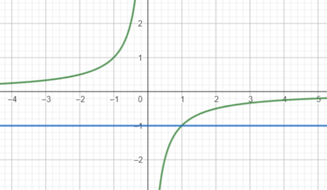 oraz g(x) = -1. Punkt przecięcia oby wykresów jest rozwiązaniem, w tym przypadku rozwiązaniem jest x = 1.