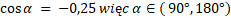znajduje się w drugiej ćwiartce, bo cosinus jest ujemny. Oblicz