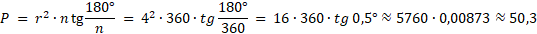 Oblicz pole 360-kąta foremnego opisanego na okręgu o promieniu 4.