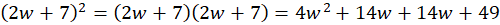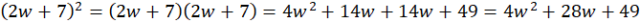 W tym zadaniu przedstaw wyrażenie (2w + 7)² za pomocą sumy algebraicznej.