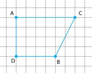 W tym zadaniu musisz narysować na kartce w kratkę trzy punkty A, B i C zgodnie z rysunkiem obok. Następnie znajdź punkt kratowy D, tak aby czworokąt ADBC był trapezem prostokątnym.