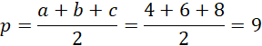 Zauważ, że nie jest to trójkąt Herona, ponieważ pole tego trójkąta nie jest wyrażone liczbą naturalną.