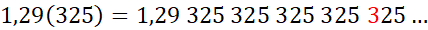 Cyfry w nawiasie – okresie – powtarzają się w tej samej kolejności w nieskończoność. Cyfra 3 jest trzecią, szóstą, dziewiątą, dwunastą i piętnastą cyfrą po przecinku rozwinięcia dziesiętnego danej liczby.