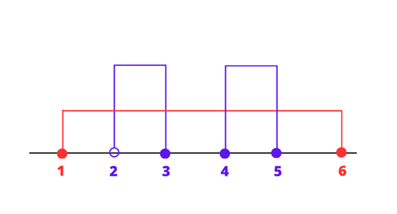 Skorzystaj z ilustracji, aby odczytać część wspólną przedziałów. Wyznacz liczby całkowite, które po podzieleniu przez 2 dają liczbę należącą do wyznaczonego przedziału.