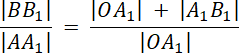 przecinają się w punkcie O. Proste te przecięto prostymi równoległymi