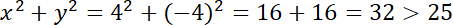 Na koniec sprawdź, czy suma kwadratów otrzymanych współrzędnych jest mniejsza od 25, czyli spełniony jest warunek