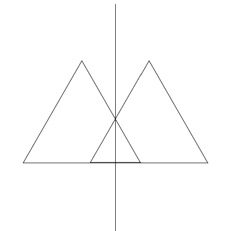 Figury są symetryczne względem prostej, wtedy kiedy jego wierzchołki są symetryczne względem prostej, czyli leżą na prostej prostopadłej do prostej i leżą po obu stronach tej prostej w równych odległościach.