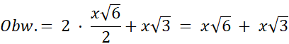 Podaj obwód trójkąta prostokątnego równoramiennego, uwzględniając długość najdłuższego boku, czyli