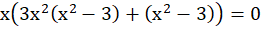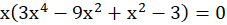Wyłączasz zmienną x przed nawias. Powstałe w nawiasie wyrażenie przekształcasz do postaci umożliwiającej wyłączenie wspólnego czynnika przed nawias. Następnie wykorzystujesz wzór na różnicę kwadratów do rozbicia odpowiedniego nawiasu na czynniki. Pierwiastki otrzymujesz analizując poszczególne człony postaci iloczynowej.