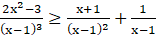 Określamy dziedzinę wyrażenia, wiedząc, że mianownik ma być niezerowy. Przerzucamy wszystkie wyrazy na jedną stronę nierówności i wprowadzamy na wspólną kreskę ułamkową. Dla dowolnych liczb rzeczywistych znak ilorazu jest taki sam jak znak iloczynu, więc rozpatrujemy wielomian będący iloczynem licznika i mianownika. Obliczamy jego miejsca zerowe i rozwiązujemy nierówność dla funkcji homograficznej.