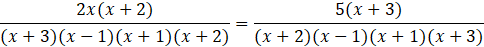 Doprowadź ułamki do jednakowych mianowników, rozwiąż równanie i sprawdź, czy wyniki należą do dziedziny: