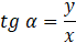 Niech punkt P = (x, y) będzie punktem leżącym na końcowym ramieniu kąta α. Z definicji tangens kąta α obliczyć można ze wzoru: