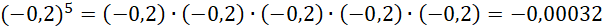 Zamień potęgę na mnożenie odpowiedniej ilości czynników. Oblicz iloczyn. Pamiętaj, że parzysta potęga liczby ujemnej jest dodatnia, a nieparzysta – ujemna.