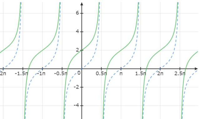 Aby naszkicować wykres funkcji f, zacznij od naszkicowania wykresu funkcji tangens. Następnie przesuń go o 2 jednostki w górę. Na podstawie otrzymanego wykresu odczytaj ile rozwiązań należących do przedziału