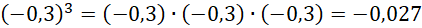 Zamień potęgę na mnożenie odpowiedniej ilości czynników. Oblicz iloczyn. Pamiętaj, że parzysta potęga liczby ujemnej jest dodatnia, a nieparzysta – ujemna.