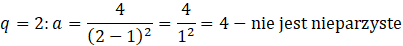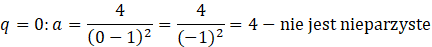 , wartość pierwszego wyrazu ciągu jest liczbą parzystą, co nie jest zgodne z treścią zadania, więc te wartości ilorazów także należy odrzucić.