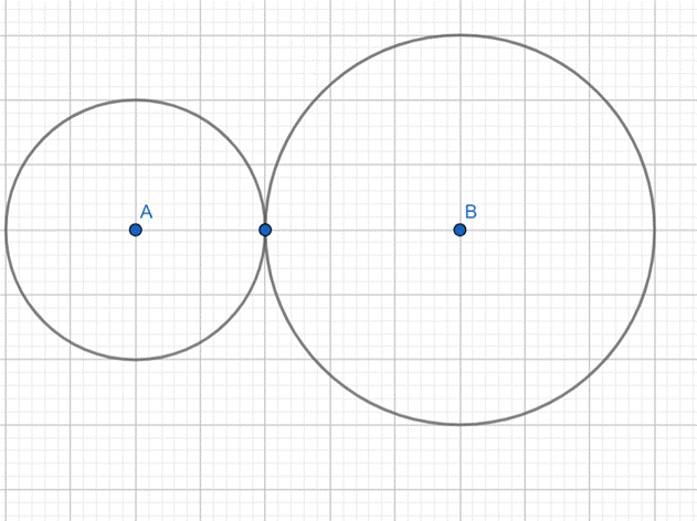 Przypadek 1: Okręgi stycznie zewnętrzne: