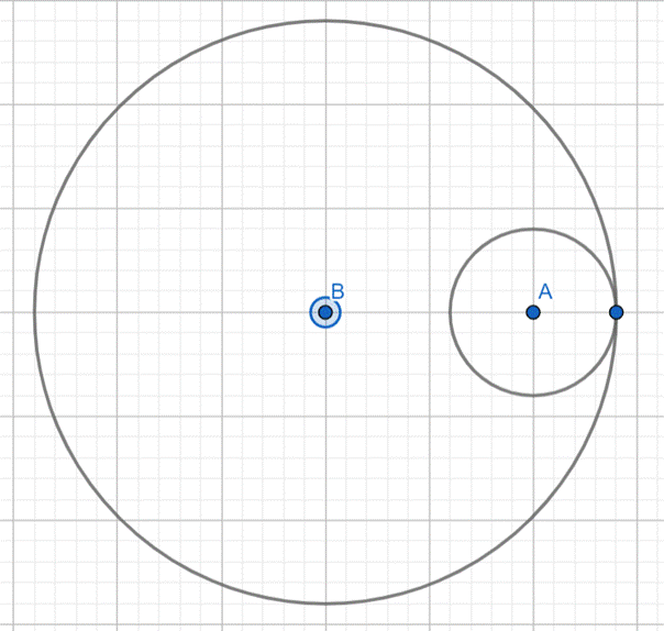 Przypadek 2: Okręgi stycznie wewnętrznie: