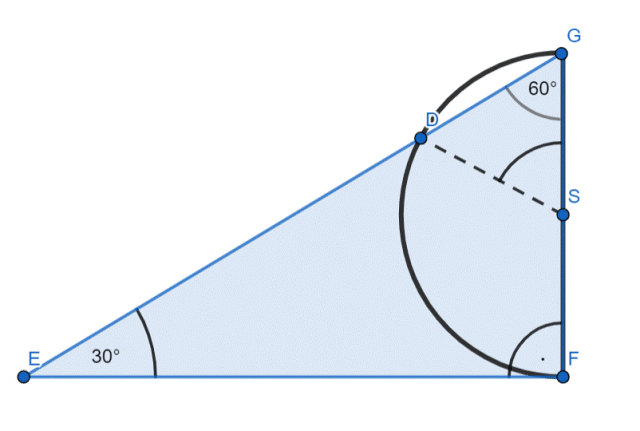 |GF| = 2, |SG| = 0,5|GF|, |∡E| = 30°, |∡G| = 60°