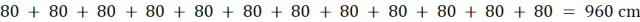 Narysuj oś liczbową. Zaznacz na niej poszczególne słupki co 80 cm. Oblicz odległość między pierwszym, a ostatnim słupkiem.