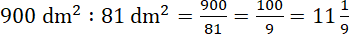 9 m2 = 9 · 1 m2 = 9 · 100 dm2 = 900 dm2