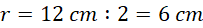 Promień dużego koła ma 12 cm.