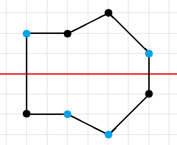 Oś symetrii to prosta, która dzieli figurę na dwie takie same części. Figura po drugiej stronie osi jest swoim odbiciem lustrzanym. Przerysuj zaznaczone punkty na drugą stronę osi. Połącz punkty, aby otrzymać wielokąt.