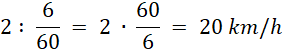 Oblicz prędkość zająca, dzieląc trasę przez czas zamieniony na ułamek ukazujący część godziny. Zamień dzielenie na mnożenie, obracając ułamek, aby łatwiej Ci się liczyło.