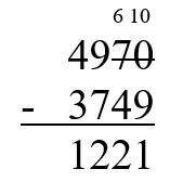 4970 km – (1175 km + 2574 km) = 4970 km – 3749 km = 1221 km