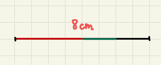W tym zadaniu narysuj odcinek o długości 8 cm i zakolorować odpowiednie jego części. na czerwono, a tego, co zostało na zielono. Podaj jaka częśc została niepokolorowana.
