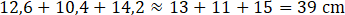 Zaokrąglij długości do pełnych centymetrów w górę i porównaj wyniki. Obwód to suma wszystkich długości krawędzi figury.