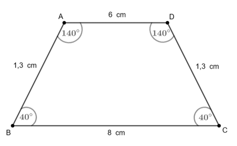 180 – 40 = 140°, czyli kąty w tym trapezie to 40°, 40°, 140°, 140°.
