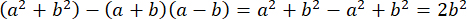 W tym zadaniu różnicę sumy kwadratów liczb a i b i iloczynu sumy tych liczb przez ich różnicę w postaci sumy algebraicznej.