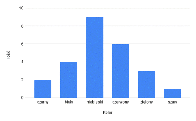 W tym zadaniu zaprezentuj w postaci diagramu słupkowego wyniki ankiety dotyczącej ulubionego koloru.