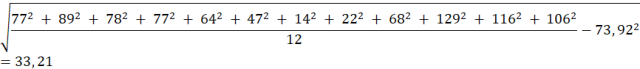 Oblicz średnią arytmetyczną oraz odchylenie standardowe za pomocą wzoru: