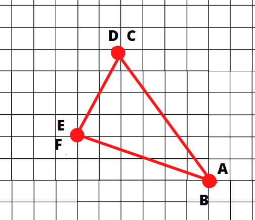 Narysuj odcinki o takiej samej długości i takiej samej drodze rysowania po kratkach – np. dla odcinka DA – 4 w prawo i 6 w dół. Reszta analogicznie, zaczynając od wspólnego wierzchołka.
