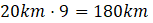 A. 180 km