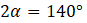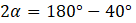 Miara jednego kąta: 70°, Miara drugiego kąta: