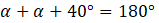 Sumą miar kątów przyległych jest 180°. Ułóż odpowiednie równanie, w którym niewiadomą jest miara kąta α.