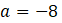 A. a = - 8