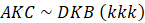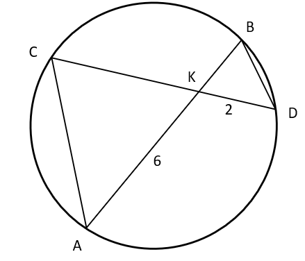 Trójkąty AKC i DKB są podobne na mocy cechy kąt – kąt – kąt (jedna para kątów odpowiadających jest kątami wierzchołkowymi, a kąty ACD i ABD oraz CAB i CDB są kątami wpisanymi opartymi na tych samych łukach). Wyznacz skalę podobieństwa trójkątów, a następnie skalę podobieństwa ich pól. Dzięki skali podobieństwa pól możesz wyznaczyć pole AKC w zależności od DKB. Otrzymana równość jest zgodna z tezą, co należało wykazać.