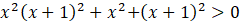 Kwadrat liczby rzeczywistej jest zawsze liczbą nieujemną, a wtedy przynajmniej jedna z liczb x2 i (x + 1)2 musi być dodatnie (druga liczba może być równa 0. Iloczyn tych dwóch liczb również jest nieujemny. Zatem suma liczb nieujemnych i co najmniej jednej liczby dodatniej musi być dodatnia.
