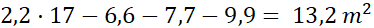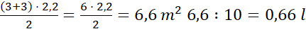 Oblicz pola każdego koloru, potem podziel pole przez wydajność 1 litra farby.