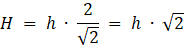 Wynika z tego, że krawędzie boczne są nachylone do podstawy pod kątem 45°. Oblicz h: