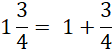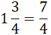 Mamy więc trzy części z czterech oraz jedną całość, czyli 4 części z 4. Razem masz 7 części z 4, czyli