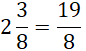 Mamy więc trzy części z ośmiu oraz dwie całości, czyli 16 części z 8. Razem masz 19 części z 9, czyli
